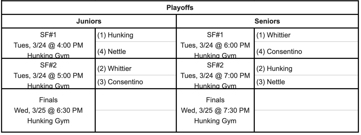 Here is the schedule for the upcoming Academic Bowl playoffs:
